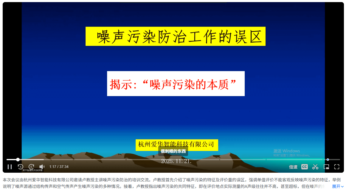 2025年11月21日,杭州愛(ài)華智能科技有限公司有幸邀請(qǐng)了原廣州市環(huán)境監(jiān)測(cè)中心站教授級(jí)高級(jí)工程師盧慶普老師前來(lái)交流指導(dǎo),并通過(guò)線下和線上視頻會(huì)議模式,為從事噪聲監(jiān)測(cè)及污染防治工作的廣大客戶朋友做了“噪聲污染防治工作誤區(qū)與本質(zhì)探析”專(zhuān)題培訓(xùn)交流會(huì)。